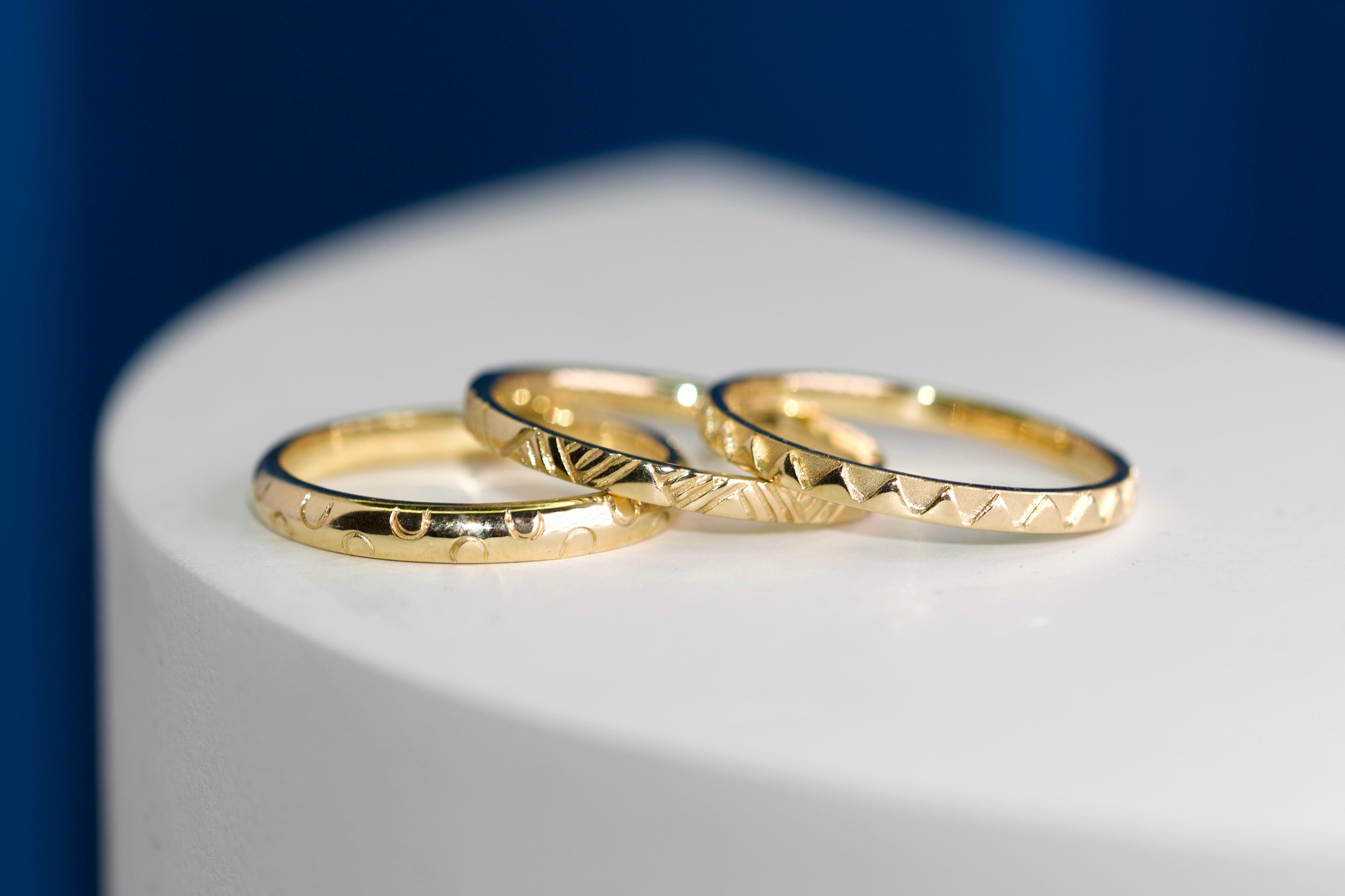 Gold Shaped Wedding Ring with Linea Engraving