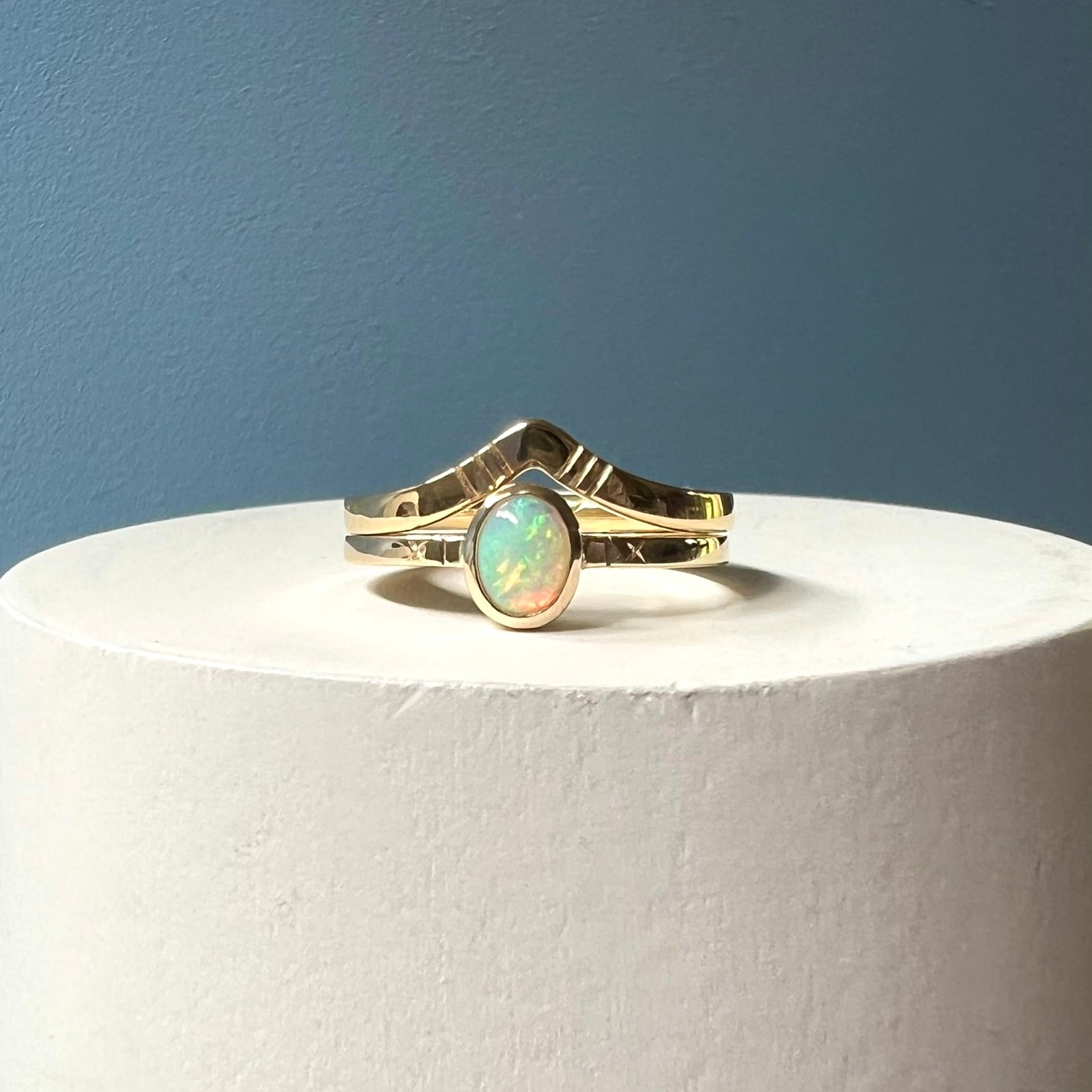 Wishbone Wedding ring & Mini Opal Engagement Ring
