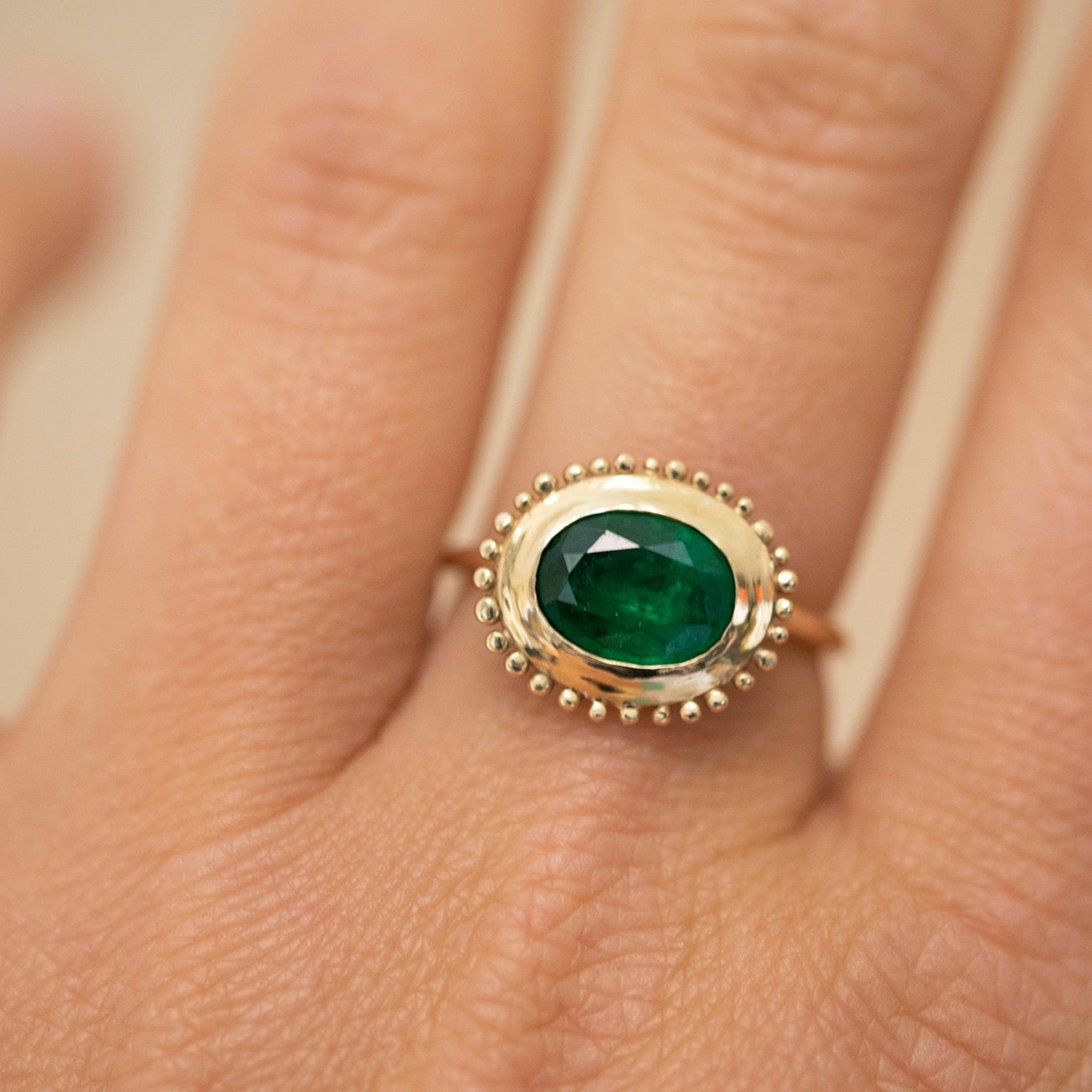 Specially sourced beautiful oval emerald to set within my radiant ring design.